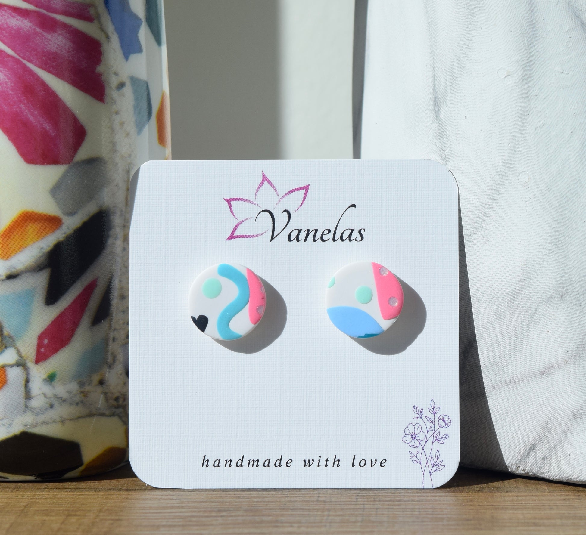 Care instruction: Avoid contact with chemicals and makeup, clean with a wet wipe, store your polymer clay earrings in a cool dry area.