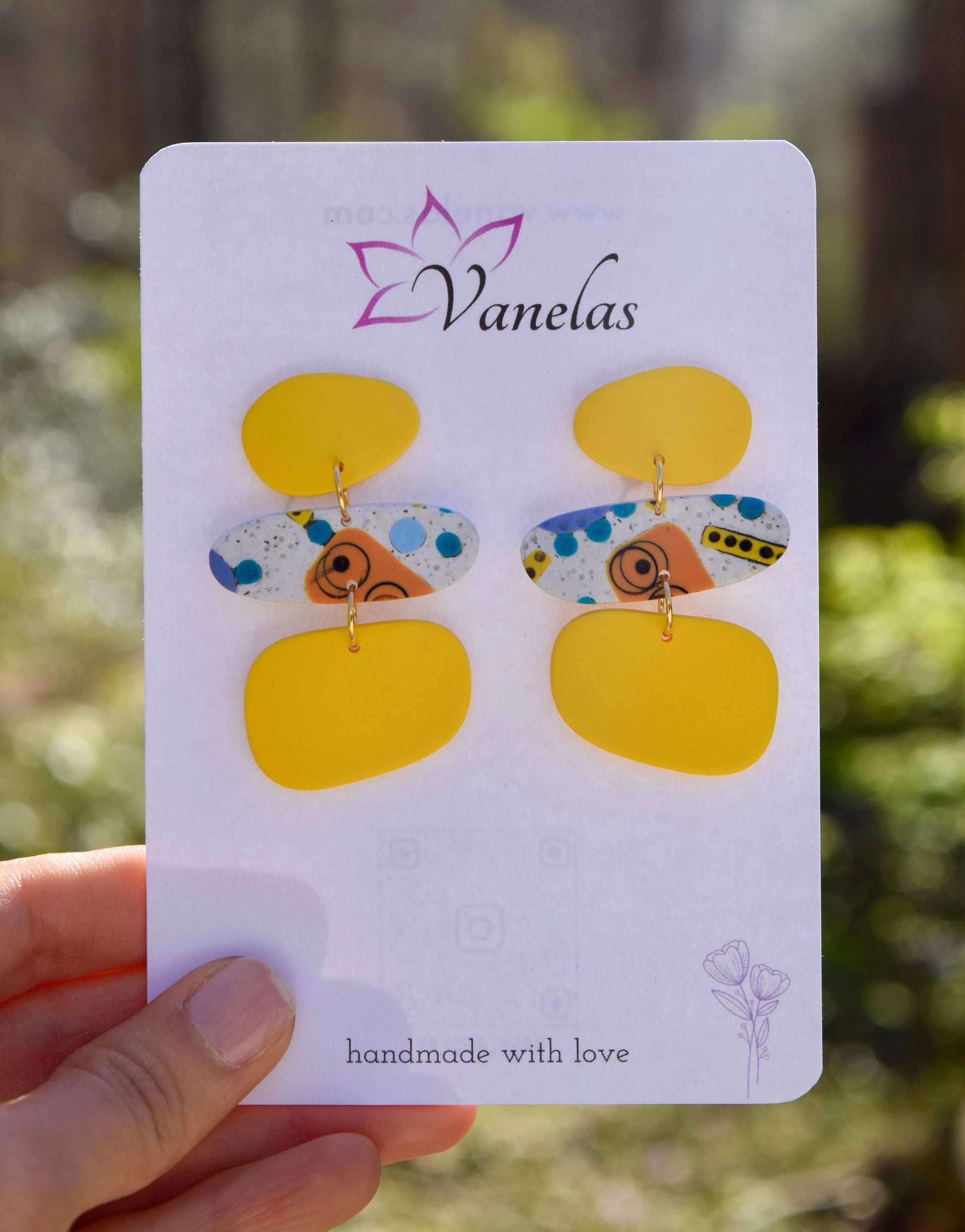 Care instruction: Avoid contact with chemicals and makeup, clean with a wet wipe, store your polymer clay earrings in a cool dry area.