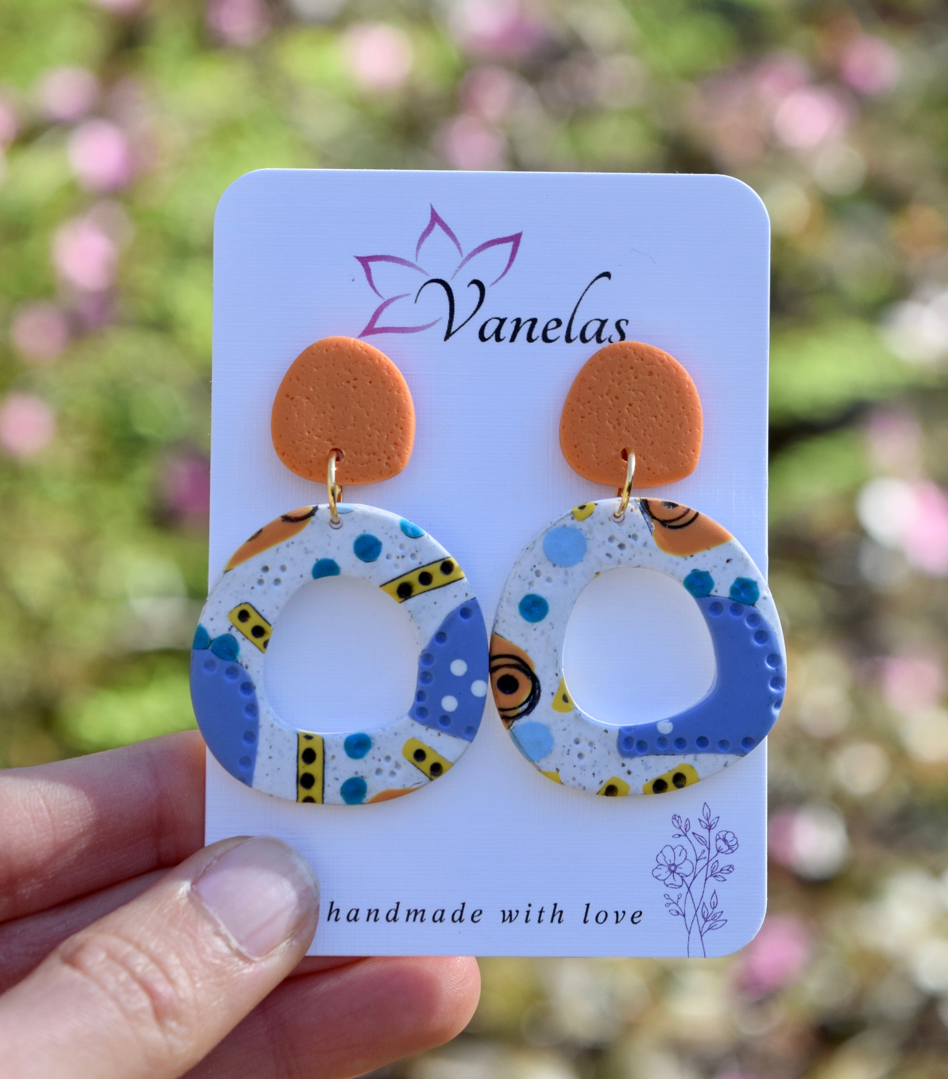 Care instruction: Avoid contact with chemicals and makeup, clean with a wet wipe, store your polymer clay earrings in a cool dry area.