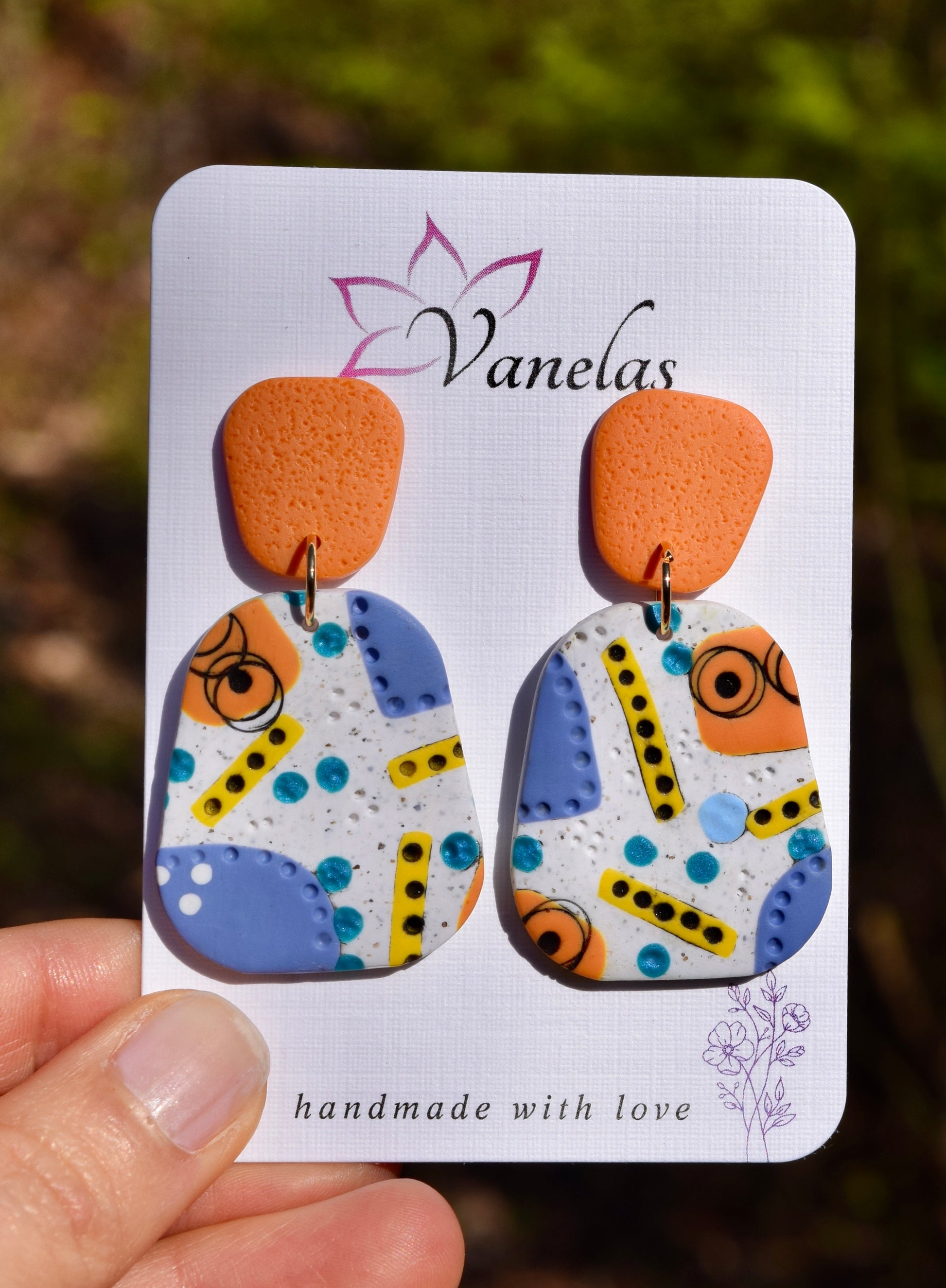Care instruction: Avoid contact with chemicals and makeup, clean with a wet wipe, store your polymer clay earrings in a cool dry area.