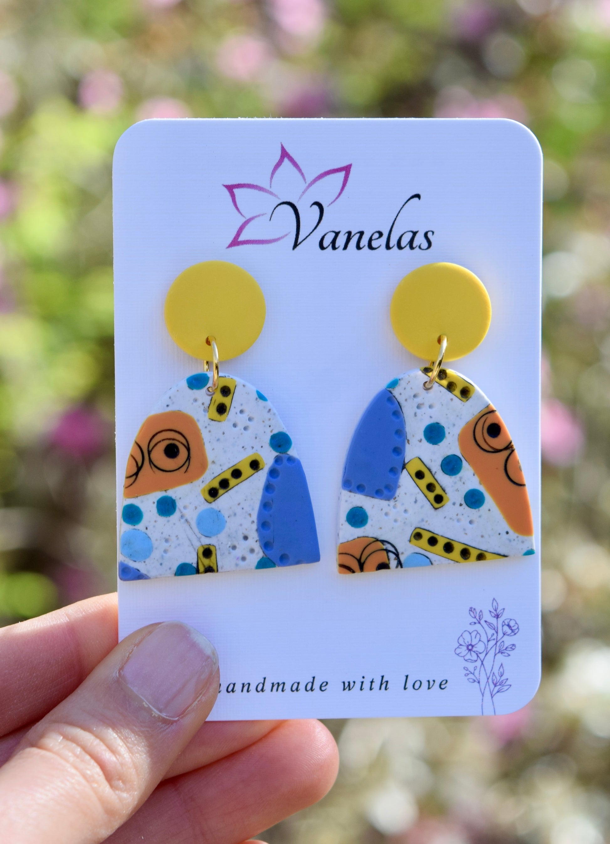 Care instruction: Avoid contact with chemicals and makeup, clean with a wet wipe, store your polymer clay earrings in a cool dry area.