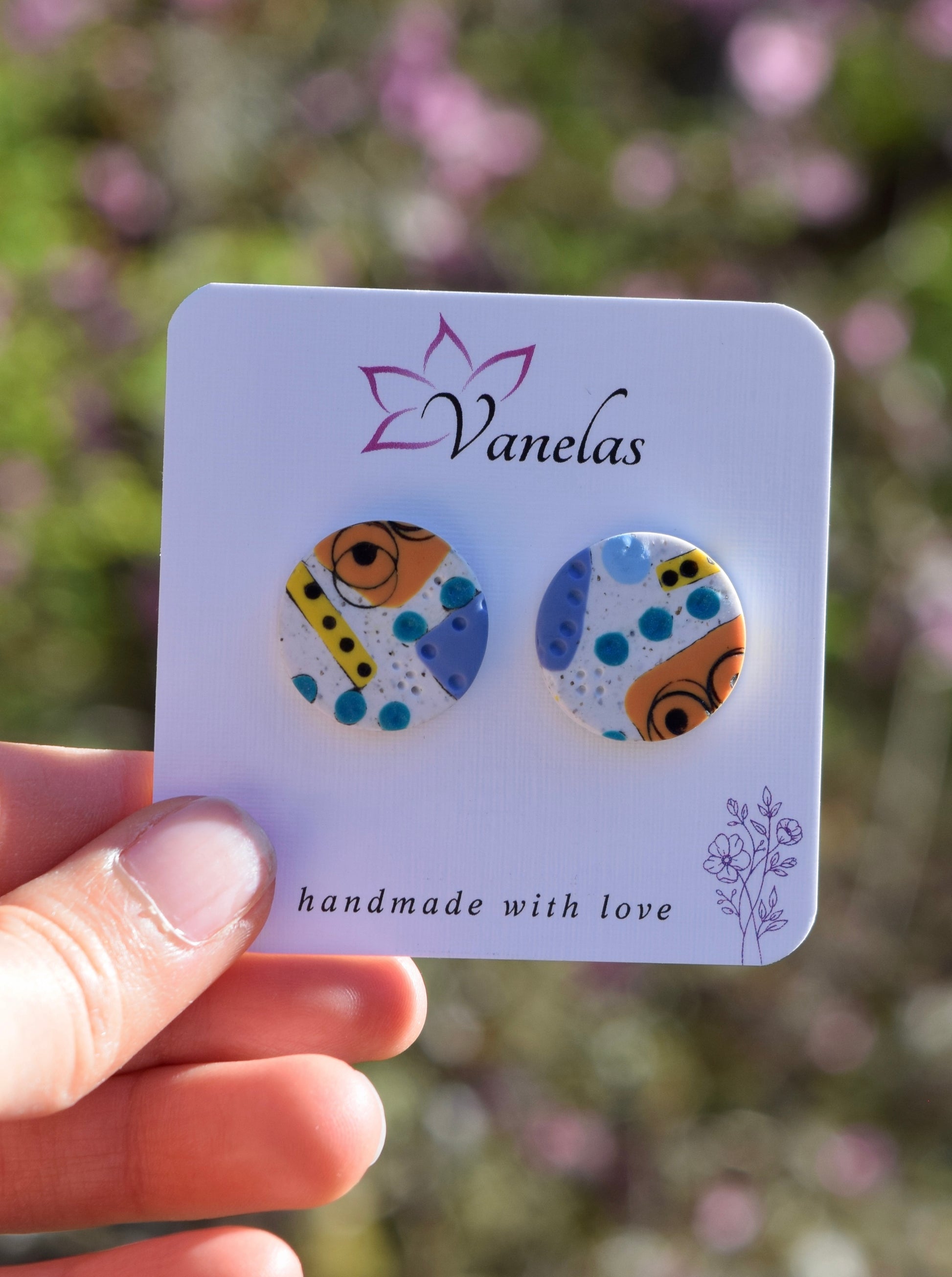 Care instruction: Avoid contact with chemicals and makeup, clean with a wet wipe, store your polymer clay earrings in a cool dry area.