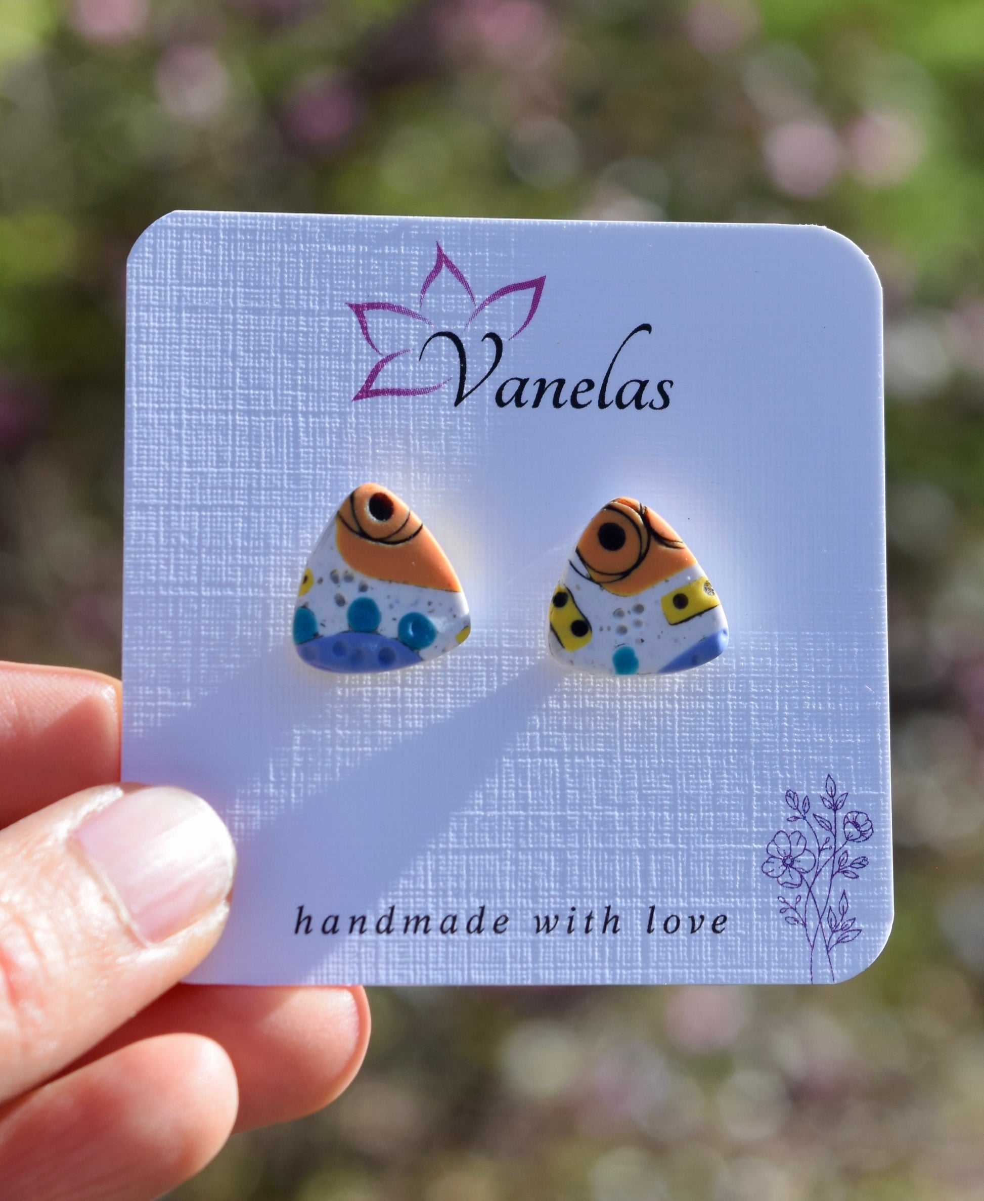 Care instruction: Avoid contact with chemicals and makeup, clean with a wet wipe, store your polymer clay earrings in a cool dry area.