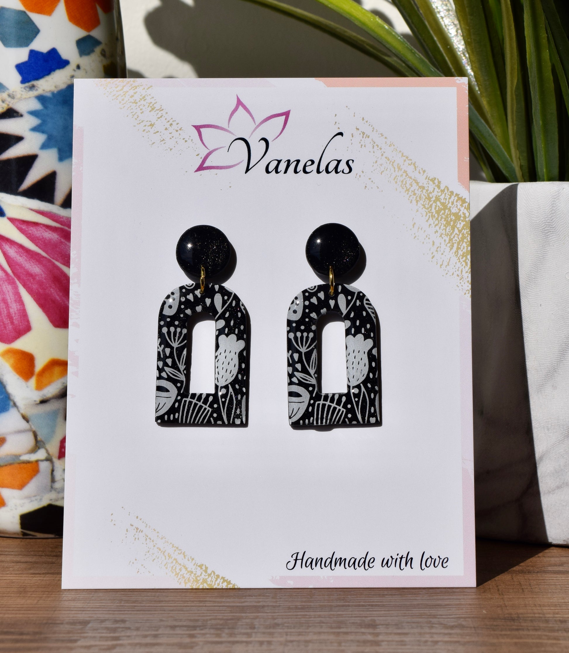 Care instruction: Avoid contact with chemicals and makeup, clean with a wet wipe, store your polymer clay earrings in a cool dry area.