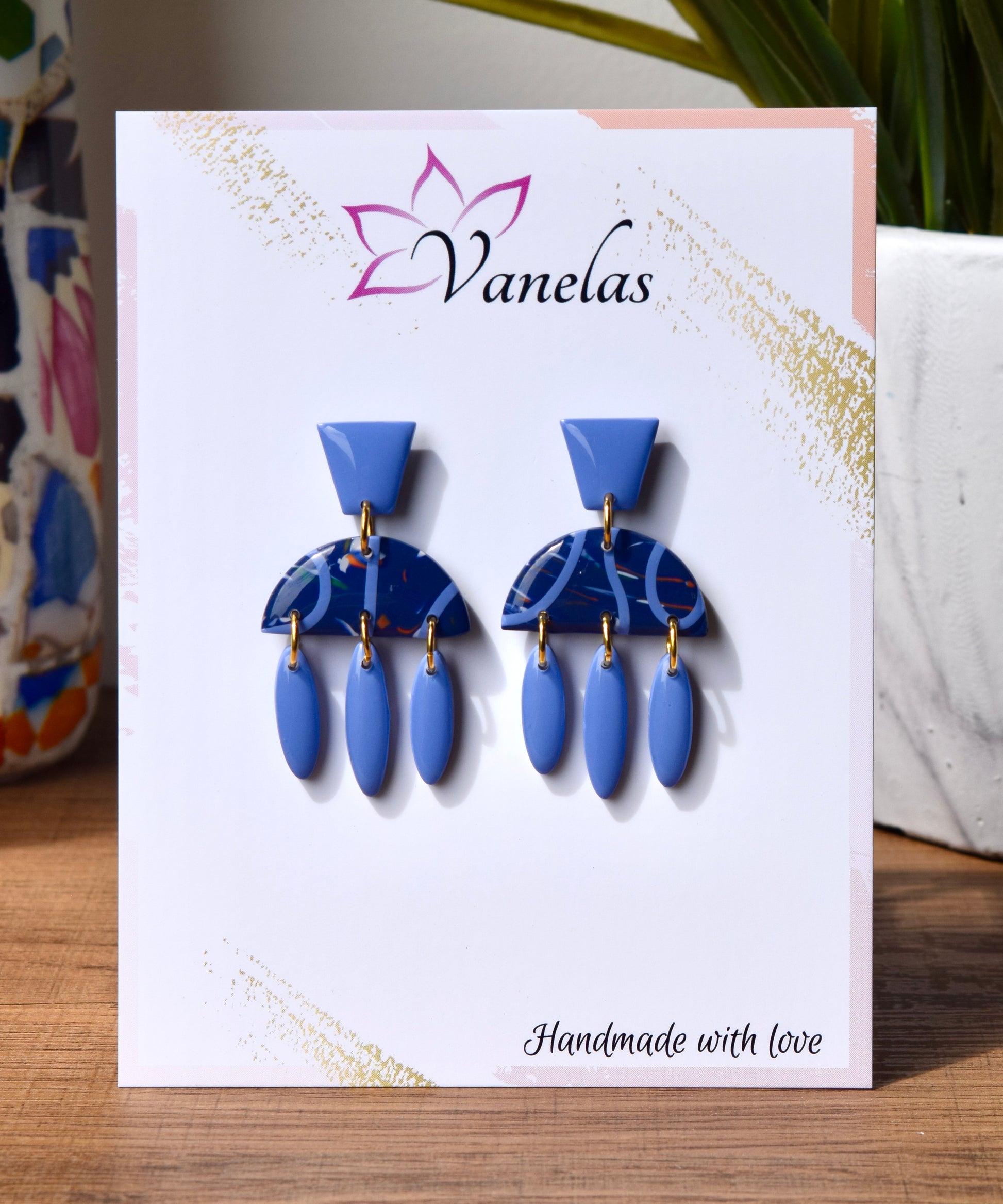 Care instruction: Avoid contact with chemicals and makeup, clean with a wet wipe, store your polymer clay earrings in a cool dry area.