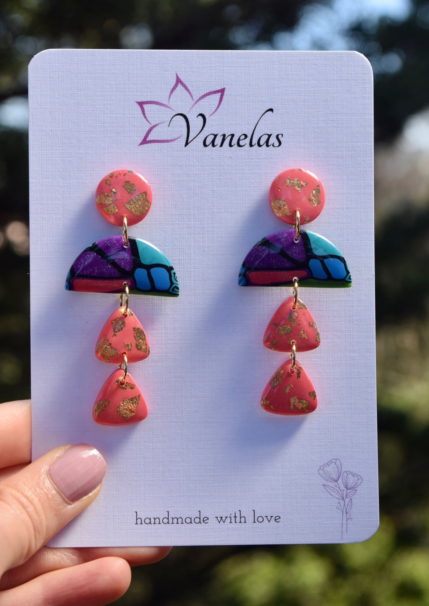Care instruction: Avoid contact with chemicals and makeup, clean with a wet wipe, store your polymer clay earrings in a cool dry area.