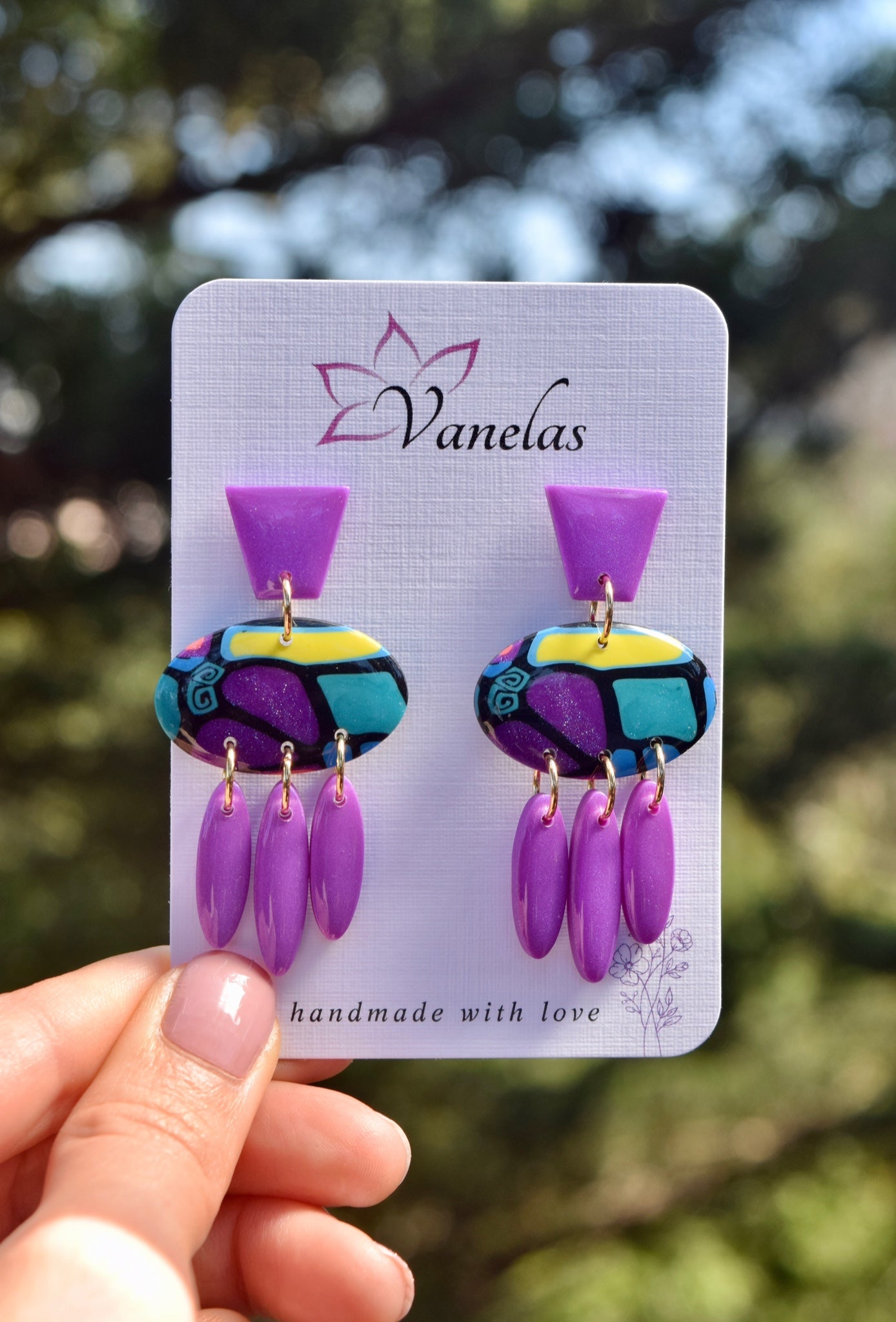 Care instruction: Avoid contact with chemicals and makeup, clean with a wet wipe, store your polymer clay earrings in a cool dry area.
