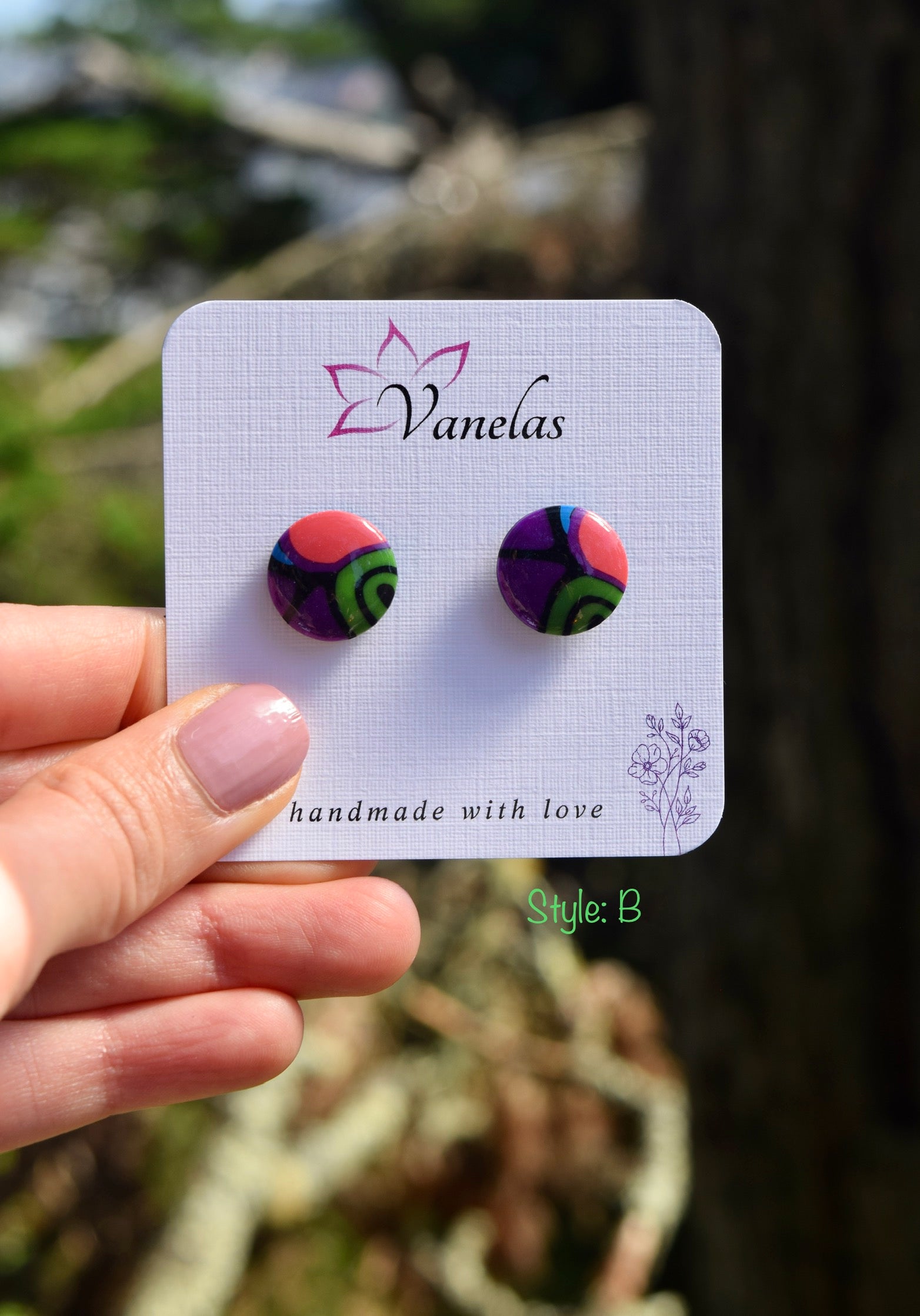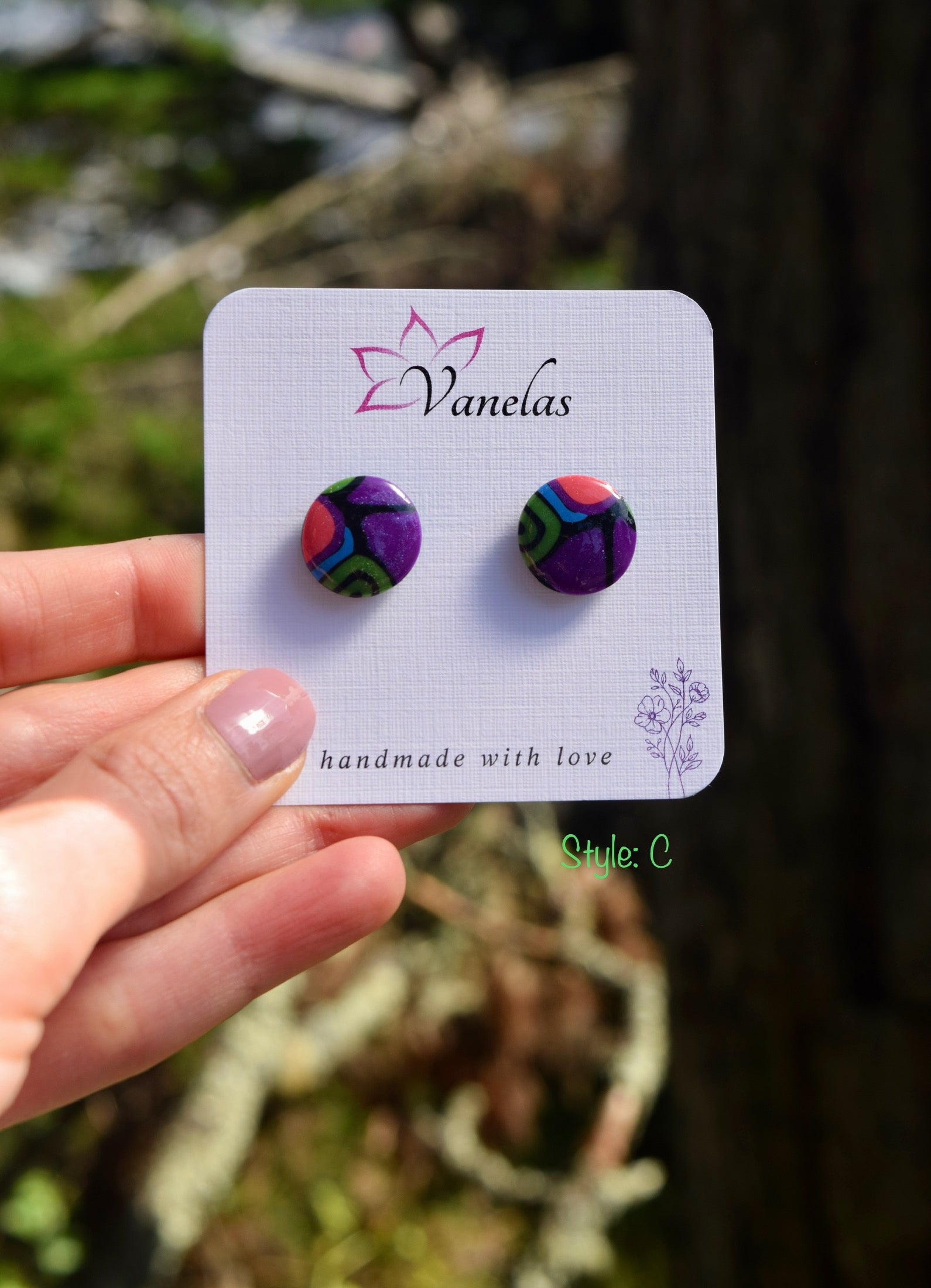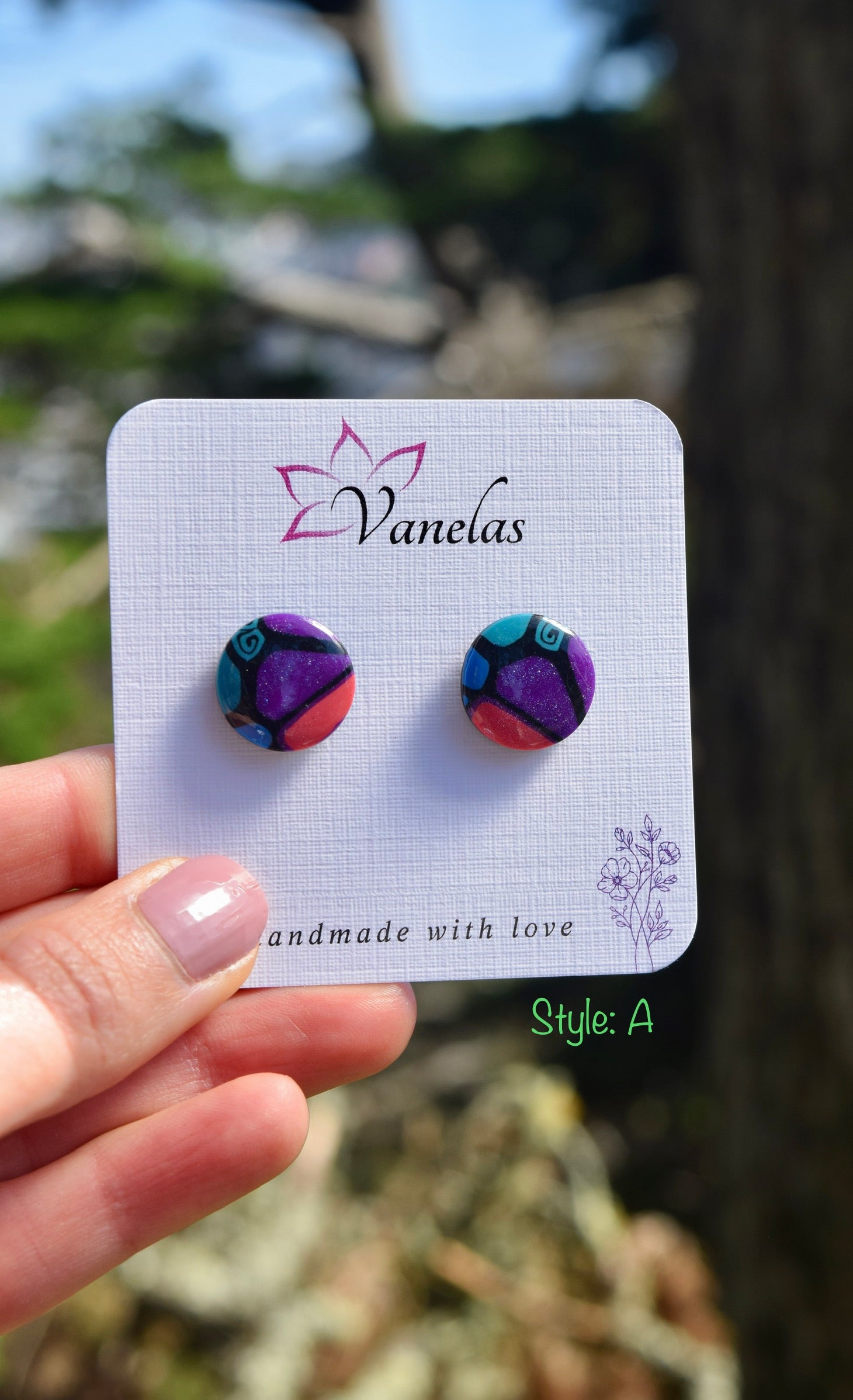 Care instruction: Avoid contact with chemicals and makeup, clean with a wet wipe, store your polymer clay earrings in a cool dry area.