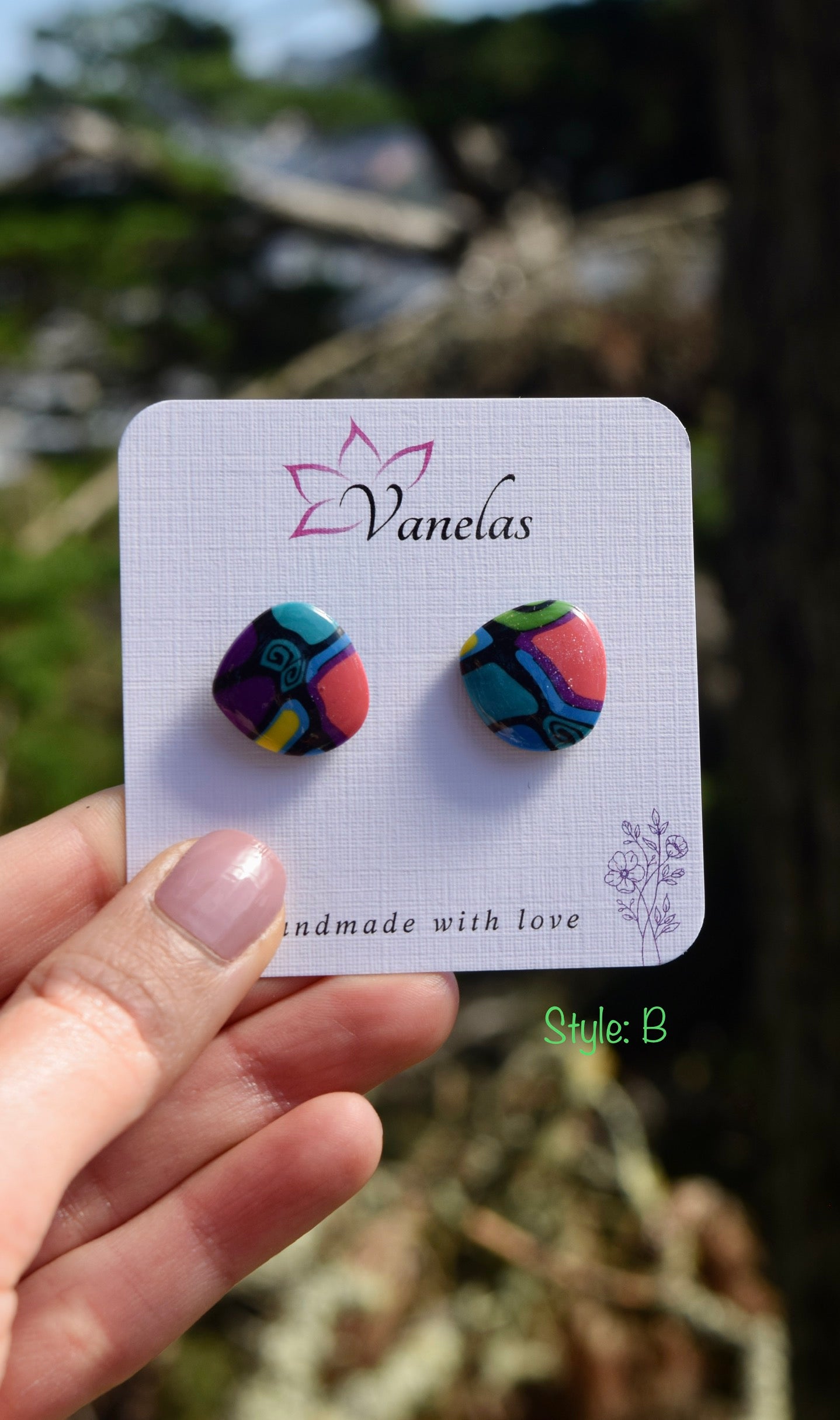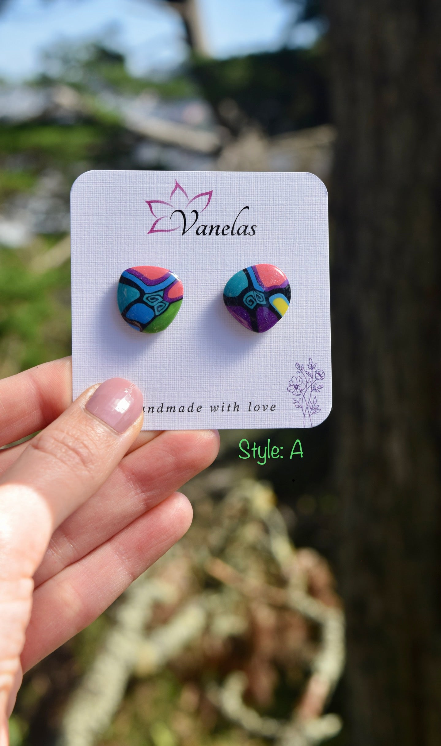 Care instruction: Avoid contact with chemicals and makeup, clean with a wet wipe, store your polymer clay earrings in a cool dry area.