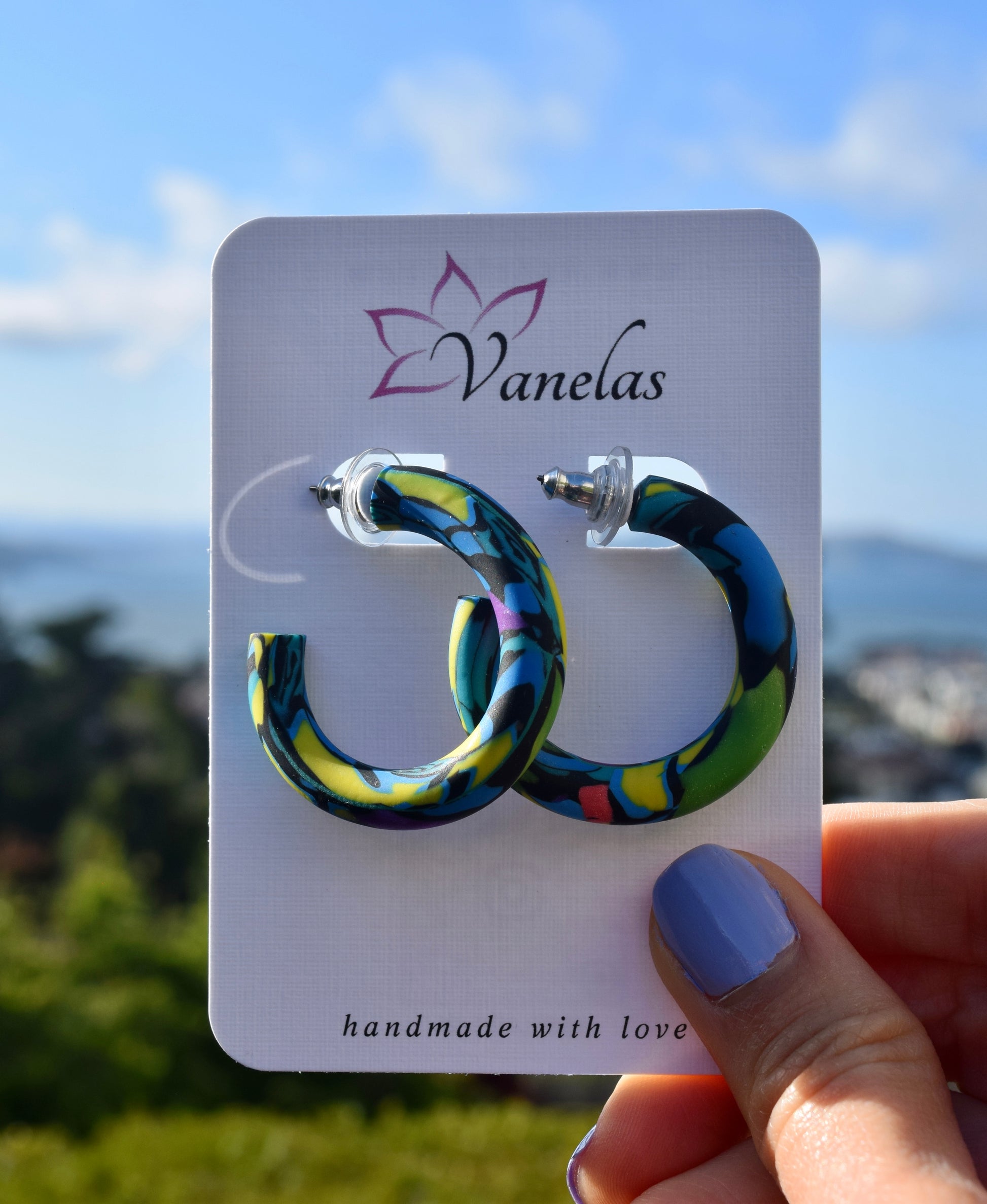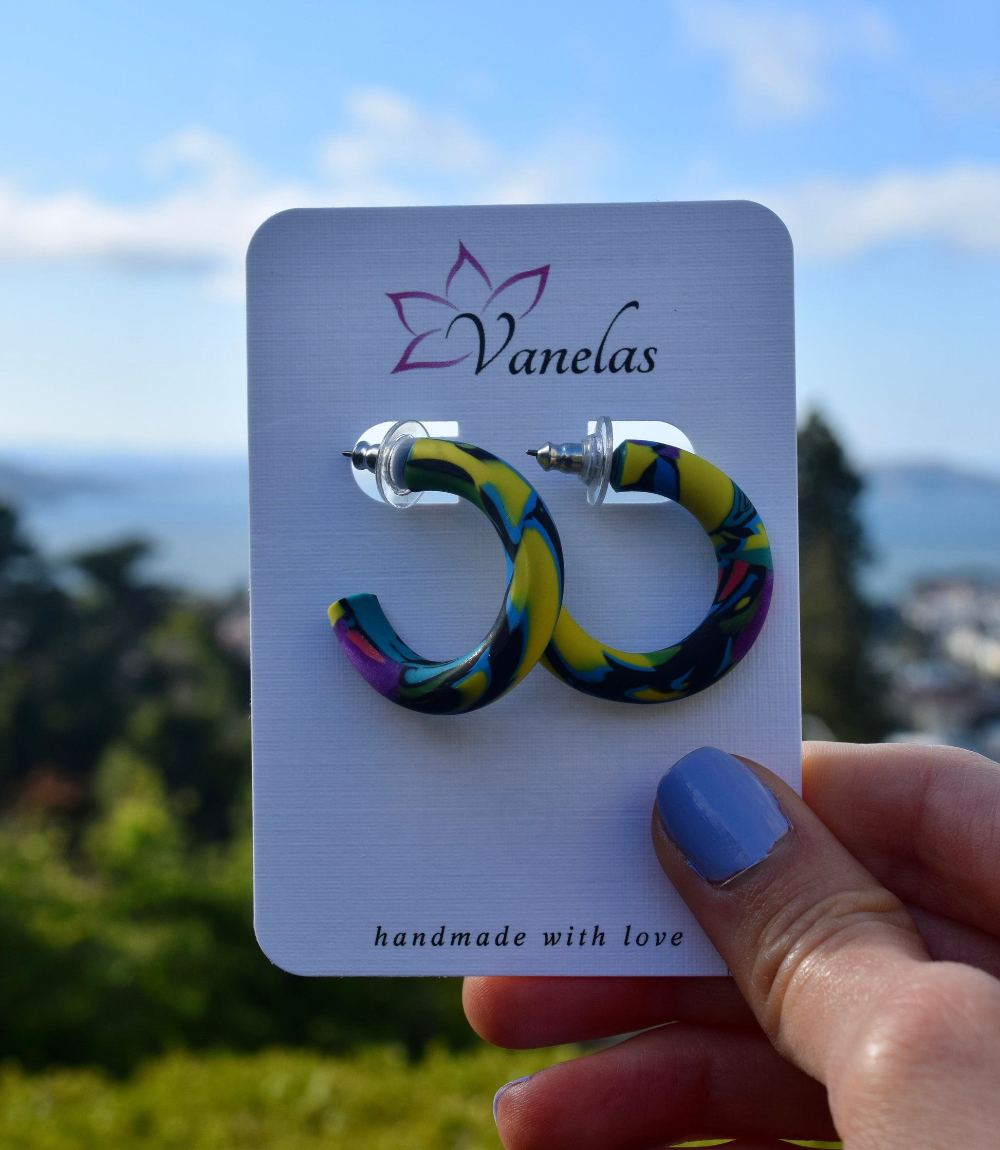 Care instruction: Avoid contact with chemicals and makeup, clean with a wet wipe, store your polymer clay earrings in a cool dry area.