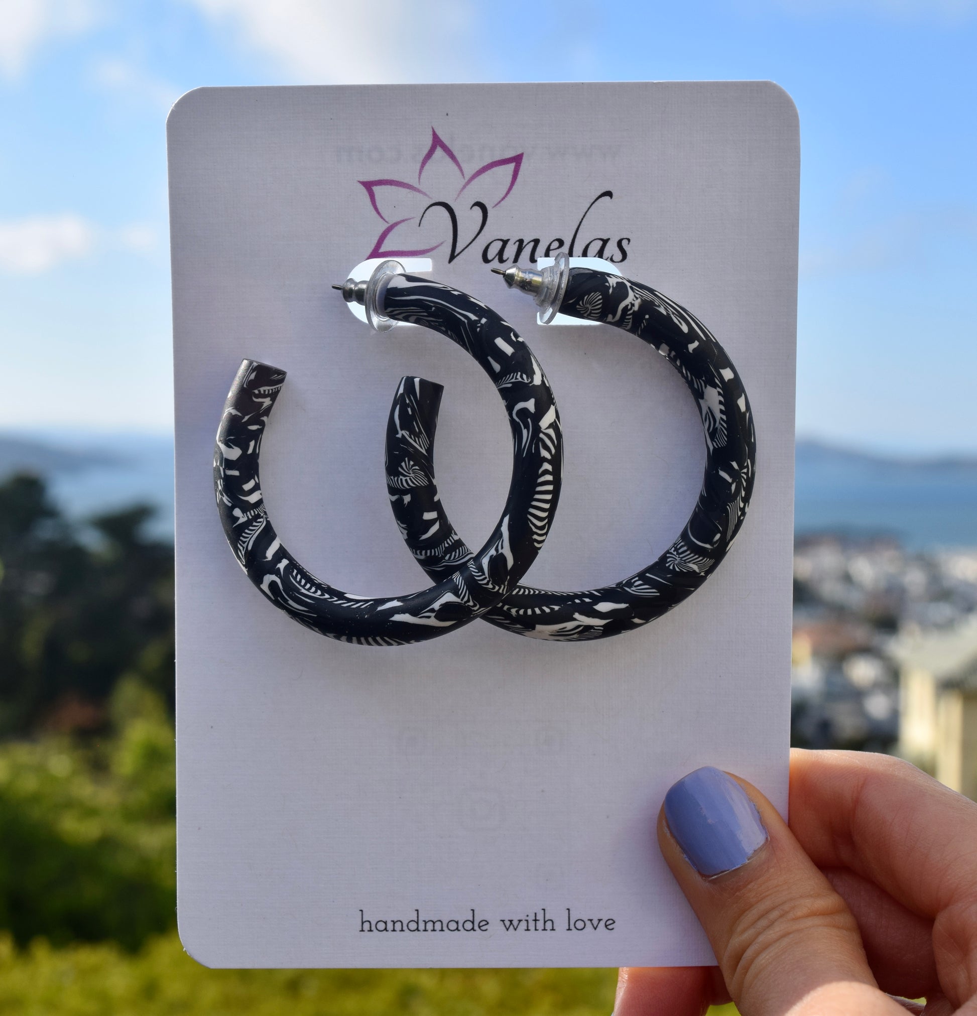Care instruction: Avoid contact with chemicals and makeup, clean with a wet wipe, store your polymer clay earrings in a cool dry area.